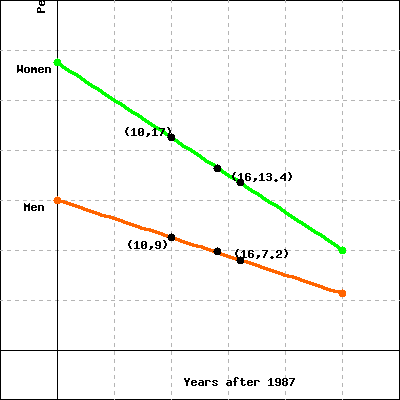a) Slope of the line for the men: