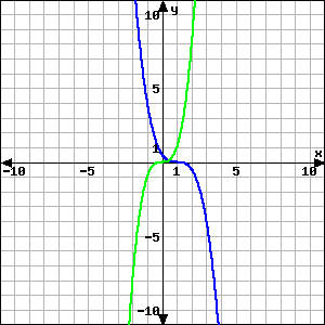 transformed from . The original function is graphed in green and the transformed function is graphed in blue.