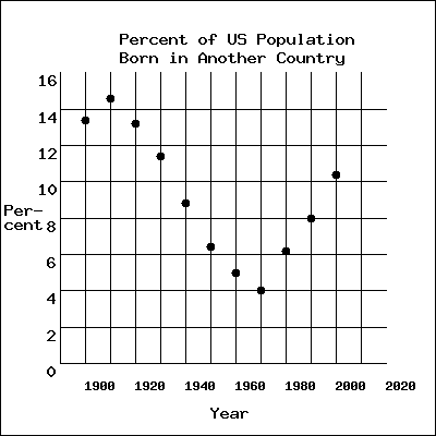 The graph below shows the percent of the US Population born in another country.