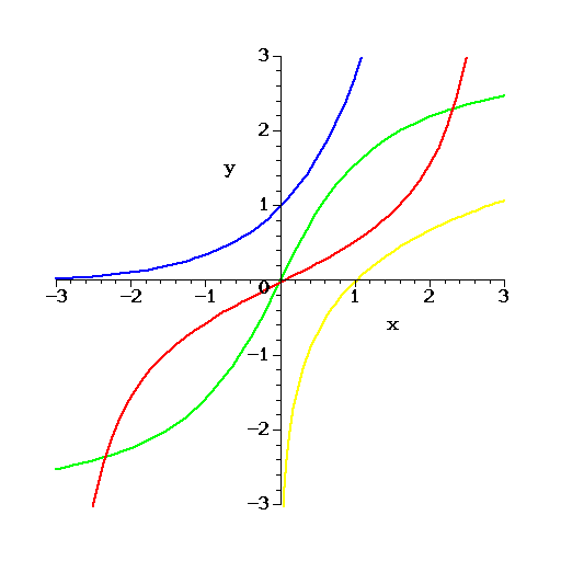 This problem illustrates that we can make statements about functions without knowing how they are defined. The Figure shows for functions that form two pairs of functions and their inverses. Enter the letters b for blue, g for green, r for red, and y for yellow below, as appropriate.